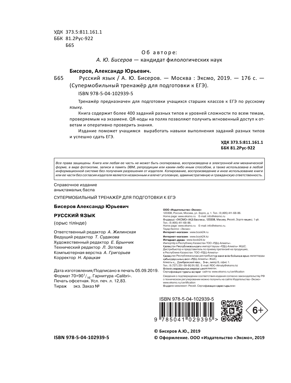 Книга: Русский язык (Александр Юрьевич Бисеров); Эксмо, 2019