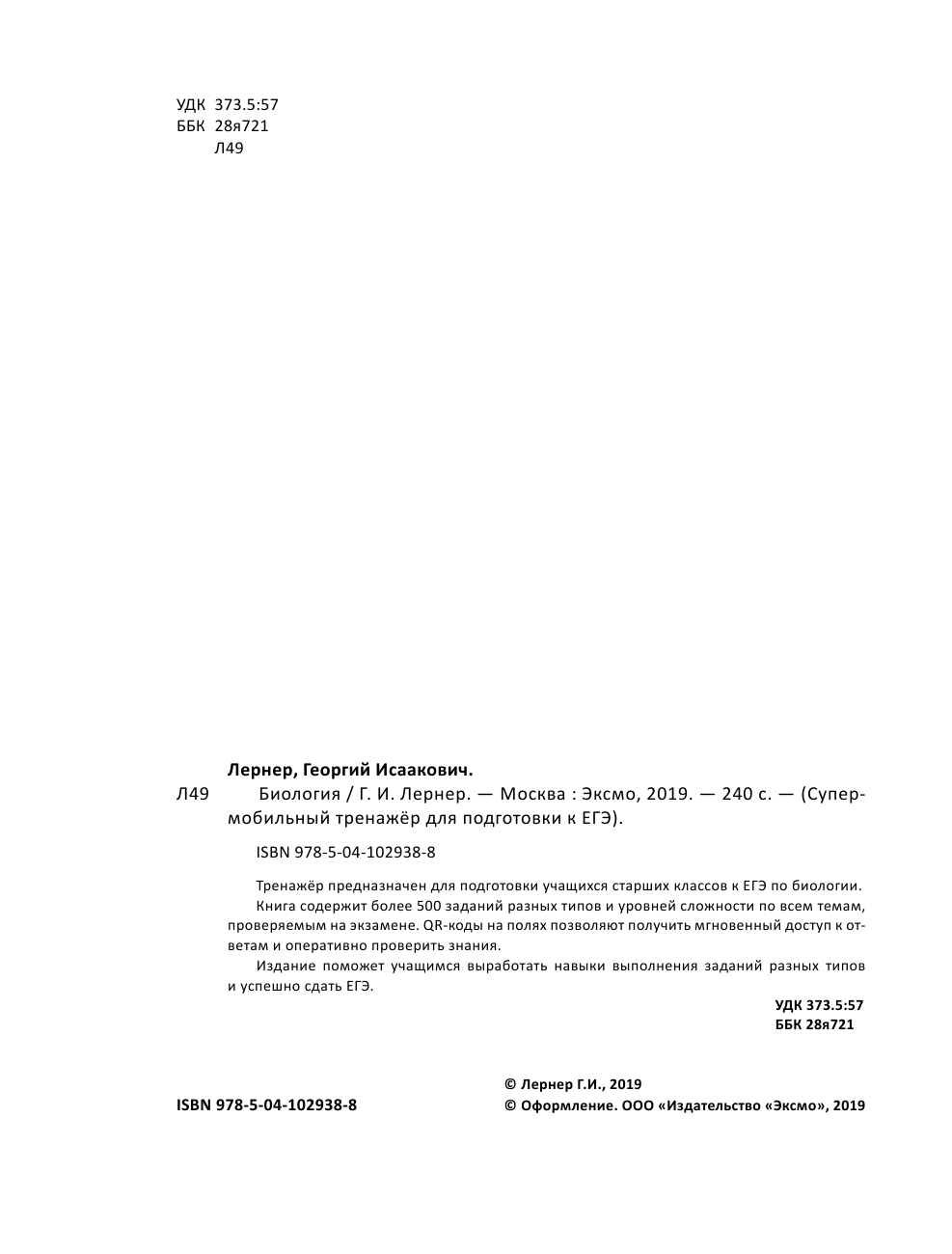Книга: Биология (Лернер Георгий Исаакович); ООО "Издательство "Эксмо", 2019
