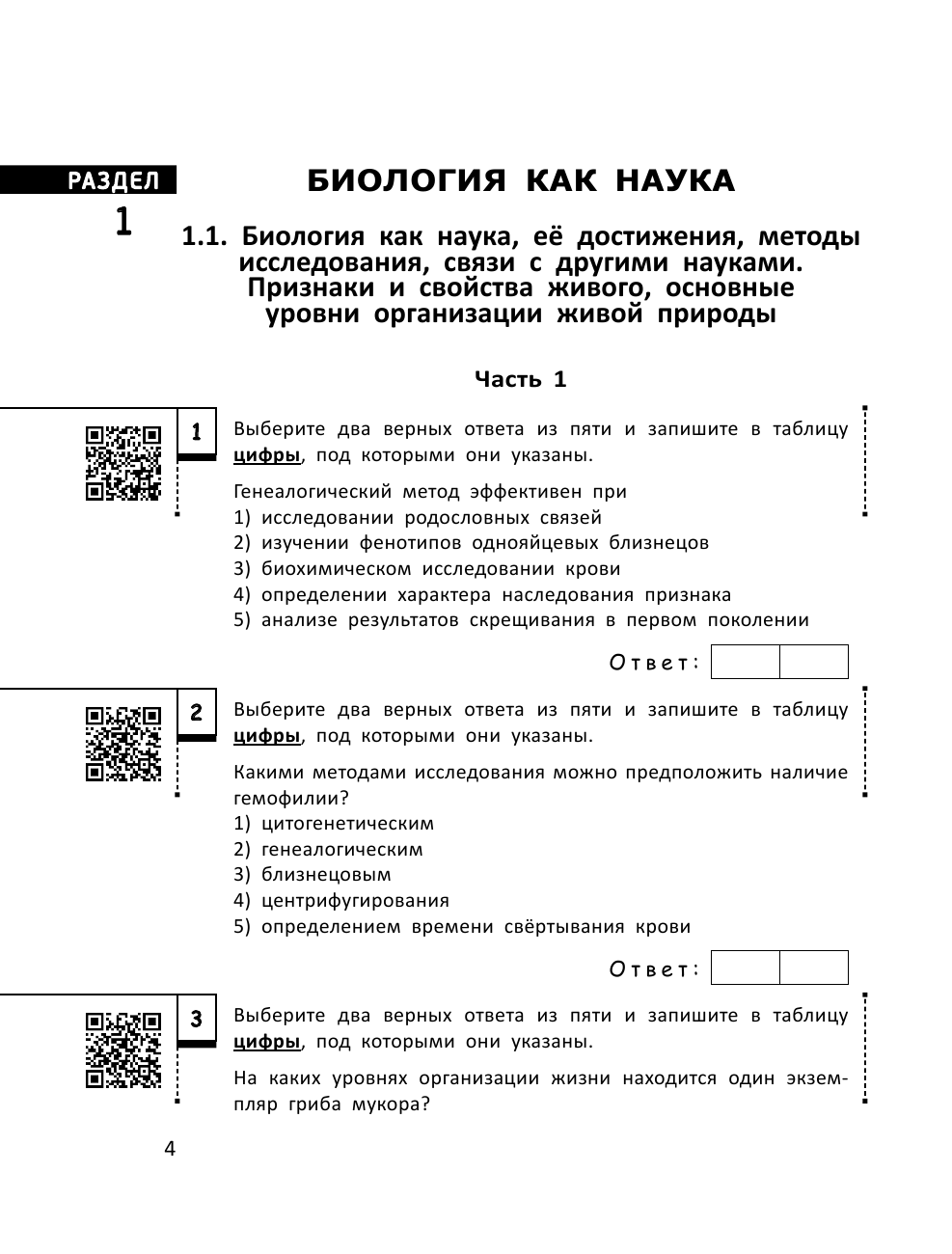 прекрасный сборник. у меня уже есть пару сборников из этой коллекции, потрясающие задания, очень удобно. система QRкода очень удобна и легкая. Листы белый и плотные, что для меня очень важно. все пришло по описани. Советую этот сборник для подготовки к единому государственному экзамену по биологии!