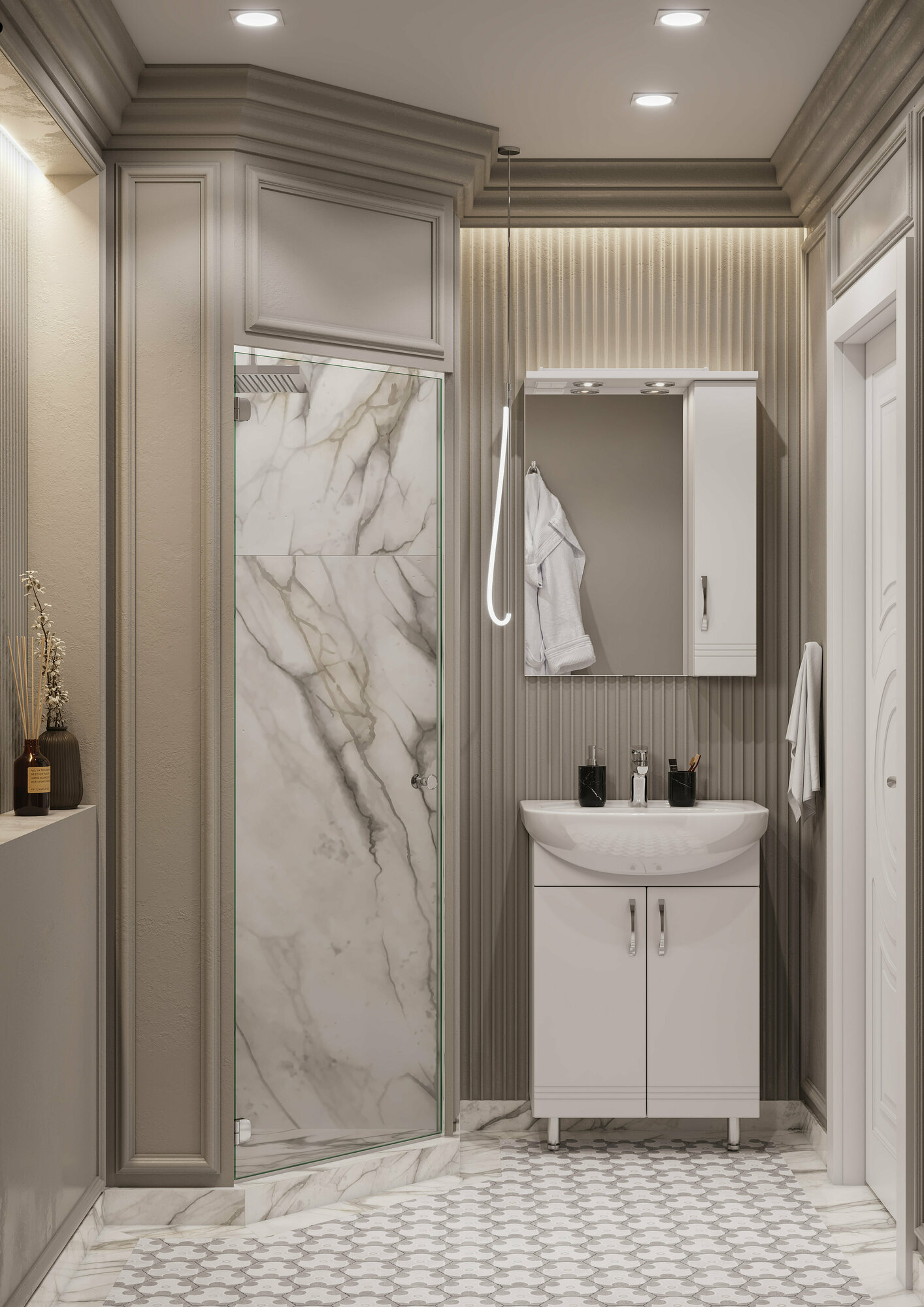 Зеркальный шкаф крепится на стену над раковиной в ванной комнате.