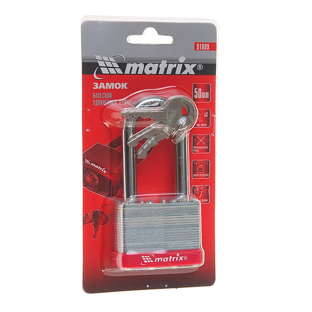 Навесной замок Matrix изготовлен из прочных материалов, а потому станет прекрасным решением вопроса защиты помещения от постороннего вторжения. Высокое качество исполнения и контроль производства позволяют снизить количество дефектов, и увеличит сопротивляемость внешним механическим воздействиям.