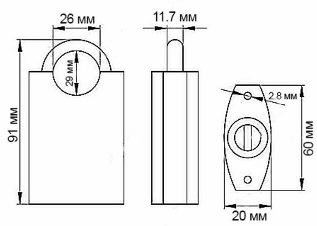 | Диаметр дужки, мм | 12 |