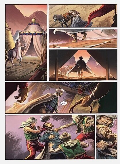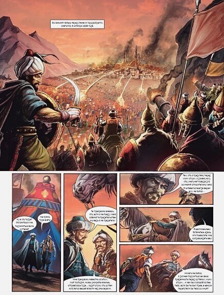 Нарисовано хорошо. Прописаны и мелкие детали . На других рисунках, где просто изображены переходные действия менее четко. Мне не хватило подписей с объяснениями. По картинкам получается, что Сулейман убил своего отца. Немного не понятно. Н в целом увлекательно.