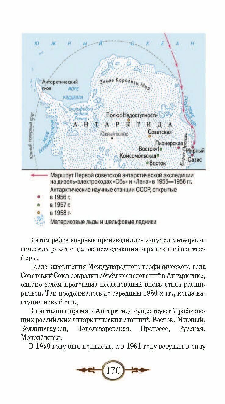 Вы также узнаете о событиях в Антарктиде во второй половине XIX и в XX вв. - о морских экспедициях Джеймса Уэдделла, Дюмон-Дюрвиля, Джеймса Росса и других исследователях, о пеших экспедициях к Южному полюсу Р. Амундсена, группы Скотта, о советских антарктических экспедициях.