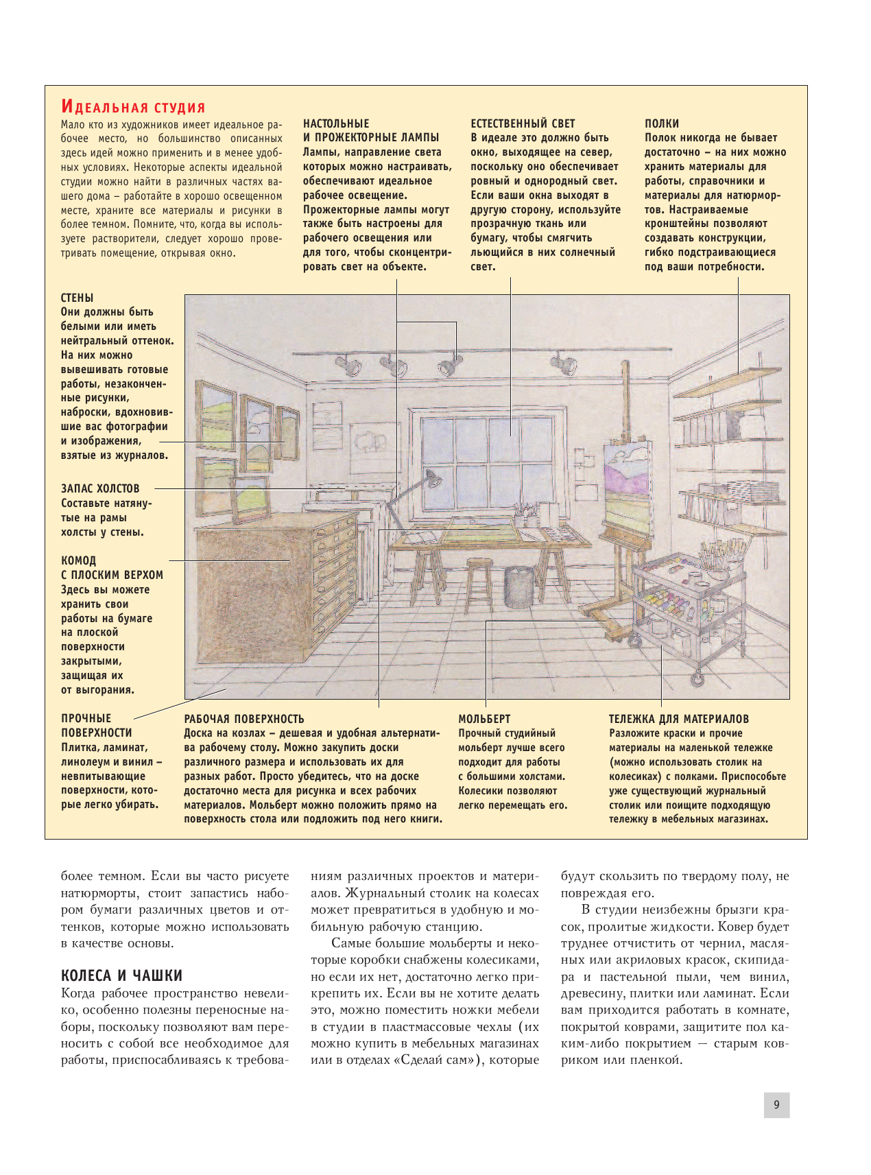 В этом самоучителе собраны самые полные сведения почти обо всех техниках и материалах для рисования и живописи. С помощью него вы узнаете, как выбирать краски, кисточки и палитры, карандаши , перья, ручки и фломастеры, мольберты, холсты и бумагу. Откроете для себя все особенности и хитрости работы с акварелью, маслом, акрилом, пастелью, карандашом и фломастером. Научитесь экспериментировать с цветом и смешивать краски и техники на одном холсте и создавать собственные тона и оттенки.