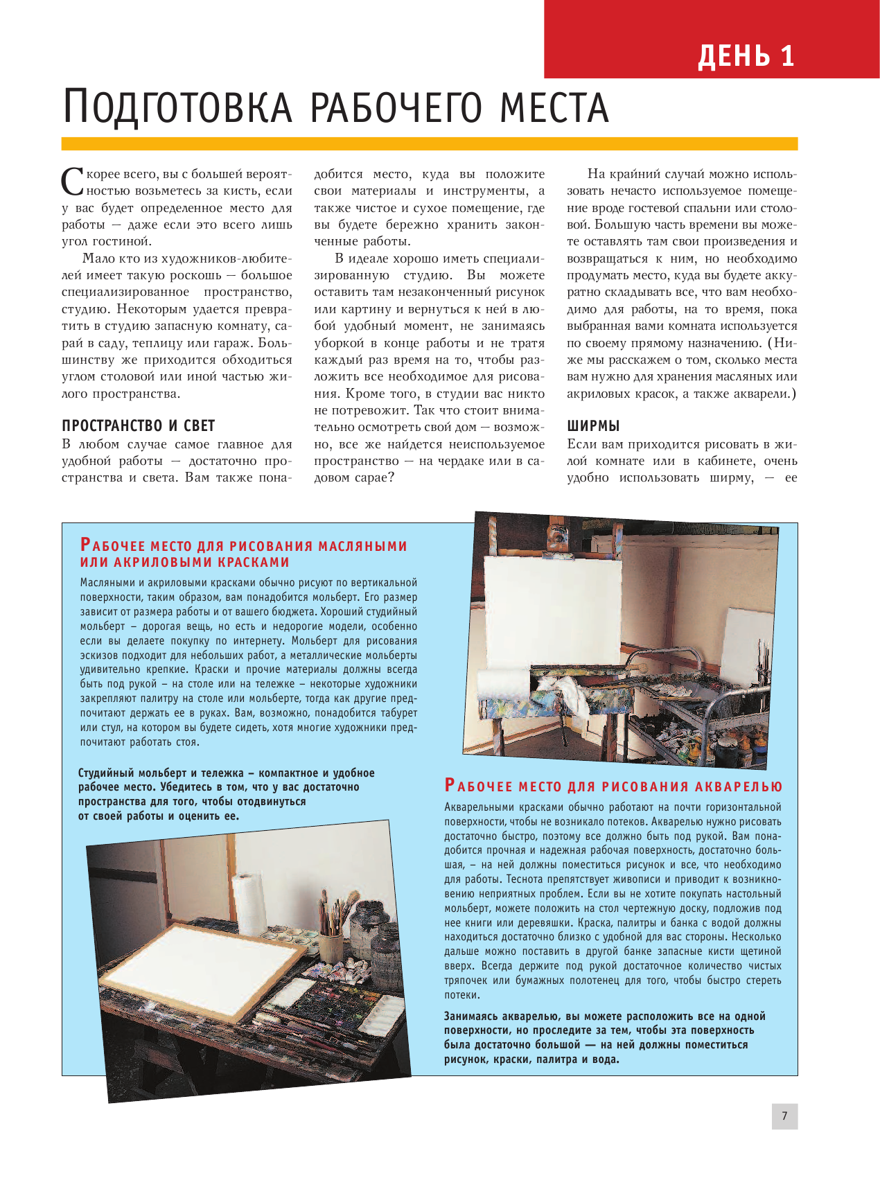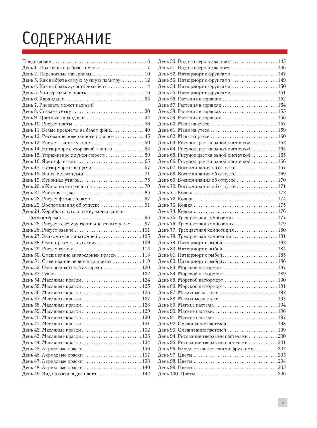 Хорошая книга для первого ознакомления с профессией художник. В книге расписан каждый день обучения, даны советы специалиста. Благодаря этому изданию мы познакомились с разными материалами и техниками рисования. Данное пособие подойдёт для любителей рисовать, для профессионалов лучше выбрать другие учебники. Конечно за 100 дней трудно научиться рисовать, но попробовать стоит. Сама книга сделана очень качественно. Она имеет твердый переплет, белые плотные страницы, множество иллюстраций с объяснениями.