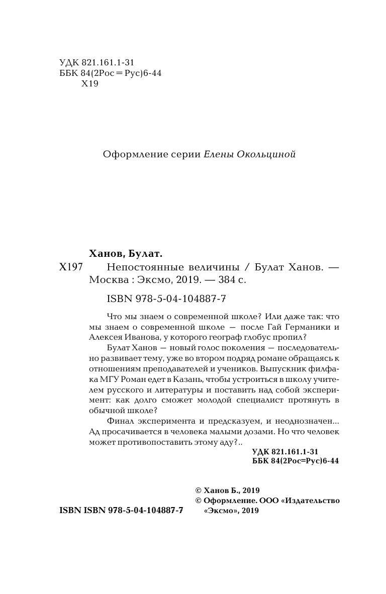 Книга: Непостоянные величины (Булат Ханов); Эксмо, 2019