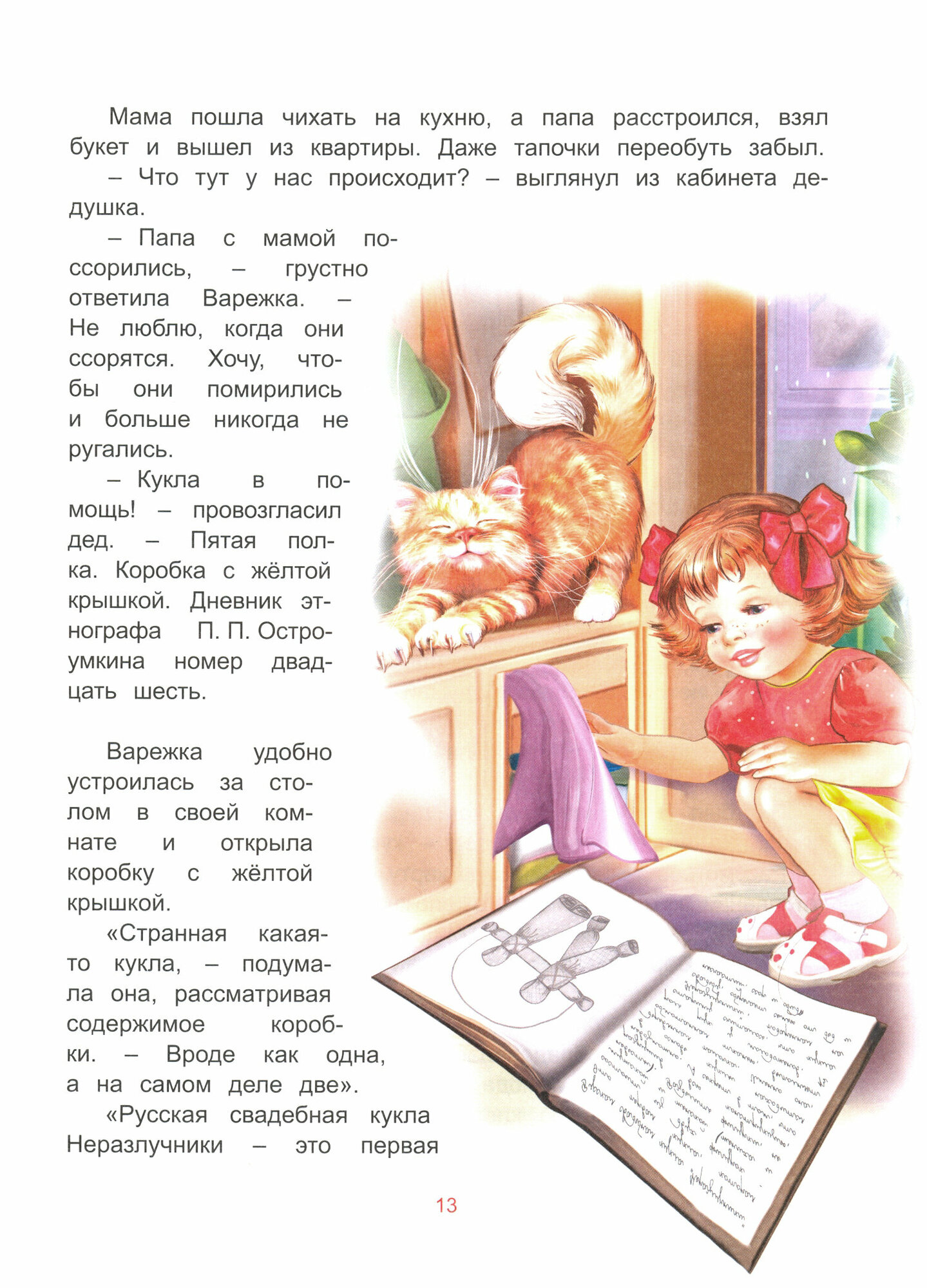 У Варежки, Вари Остроумкиной, дед - кукловед! Да-да. Есть такая профессия. Правда, сам дедушка называет себя профессором этнографии. Он изучает разные народы, их культуру, традиции, и кукол в том числе. О народных куклах дедушка вообще много интересного может рассказать. В старину на Руси было их великое множество. Скрученные из соломы, травы, веточек, смотанные из ниток, лоскутков и тряпочек, куклы были не только ребячьей забавой, но и участниками праздников, обрядов, служили оберегами, защитниками, помощниками.