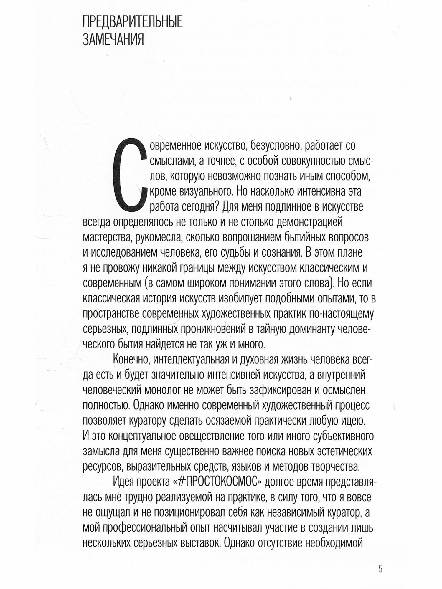 Альбом-каталог "#ПРОСТОКОСМОС" создан по материалам одноименной выставки, состоявшейся в залах Балтийского филиала Государственного центра современного искусства и Арт-платформы "Ворота" Калининграда. В проекте приняли участие более 50 российских и зарубежных художников, среди которых Михаил Молочников, Петр Караченцов, арт-группа "BERTOLLO", Александра Митлянская, а также ученик Марины Абрамович македонский перформансист Игорь Иосифов.