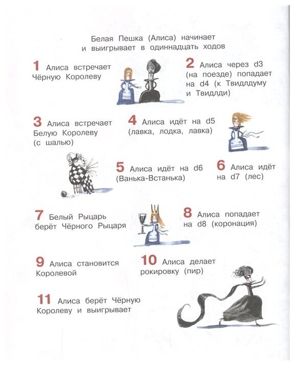 Тех, у кого ностальгическая привязанность к классическому переводу Демуровой, может покоробить, что тут персонажи сменили имена: Труляля и Траляля стали Твидлдумом и Твидлди, Шалтай-Болтай — Ванькой-Встанькой и т. д. Плюс заново переведены некоторые стихи: «хливких шорьков» тут нет, например. В остальном, я выборочно сравнила отдельные отрывки с оригиналом, в целом, перевод Азова достойный.