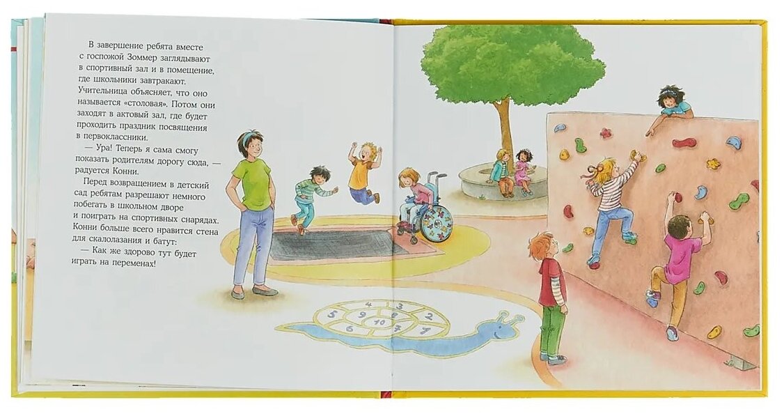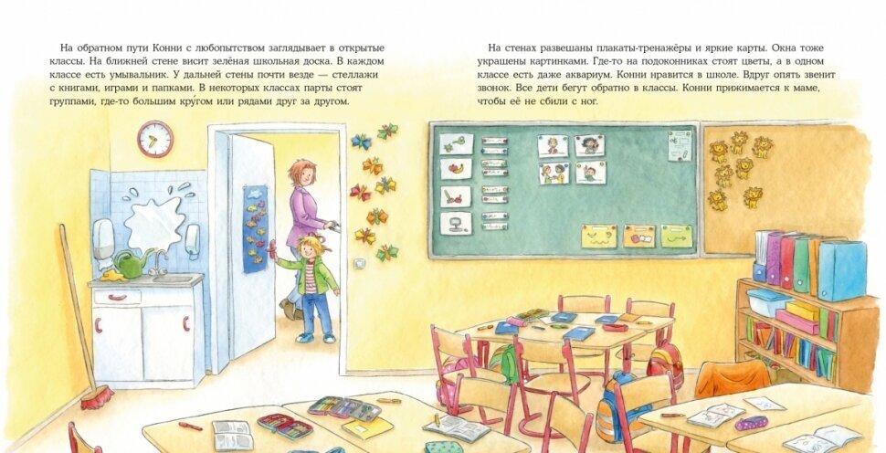 Какой будет первая учительница? Станут ли друзьями одноклассники? Будет ли интересно и комфортно в школе? Все эти вопросы очень волнительные. Школа — совершенно новый этап в жизни ребёнка и его родителей. Вот и Конни тоже отправляется в первый класс: знакомится со школой, волнуется, кто будет её новыми друзьями, радуется новеньким школьным принадлежностям. И с радостью начинает учёбу.