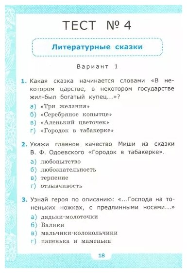 Предлагаемое пособие адресовано учащимся 4-х классов начальной школы. Тестовые задания различного уровня сложности ориентированы на текущий контроль и оценку знаний учащихся по литературному чтению. Тесты могут выборочно использоваться для организации контрольных проверок при оценивании достижений учеников по литературному чтению. Материалы разработаны в соответствии с программой по литературному чтению и могут быть использованы как система оценки школьной успеваемости.
