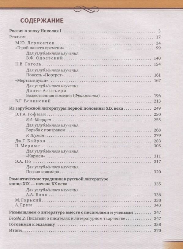 Курс 9 класса представляет собой хронологическое изучение произведений золотого века русской литературы в их тесной связи с историко-культурным процессом. Изложение материала направлено на формирование исследовательских литературоведческих умений: рубрики «Слово знатоку (филологу, историку, писателю, современнику)» и «Историко-культурная справка» помогают оценить то или иное литературное явление в контексте эпохи. Рубрики «Темы исследовательских проектов» и «Собрания сочинений» (рассказывающая об академических собраниях сочинений классиков) предполагают литературоведческую и лингвистическую работу на углублённом уровне. Раздел «Готовимся к экзамену» составлен в соответствии с форматом государственной итоговой аттестации и может использоваться как для текущего контроля, так и для подготовки к экзамену.