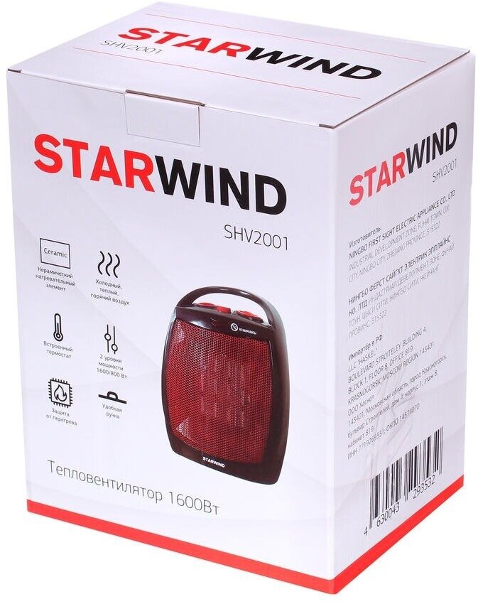 Тепловентилятор STARWIND 1600Вт черный красный SHV2001
