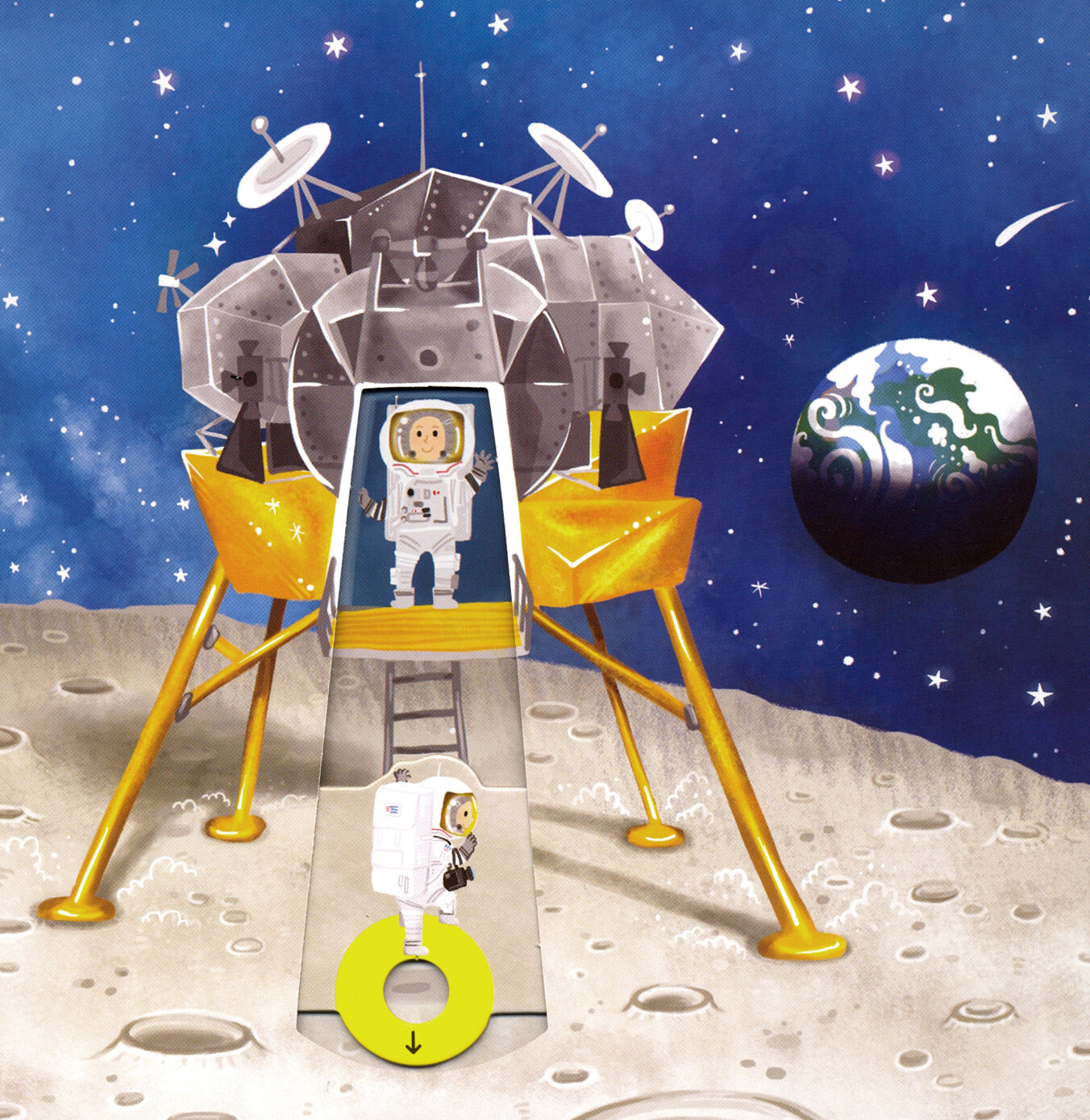 Each scene has chunky push, pull and slide mechanisms perfect for little hands with fun facts about the Moon Landing. Beautifully illustrated by Lon Lee, this title provides gentle early learning and is a simple introduction to science topics for small children.