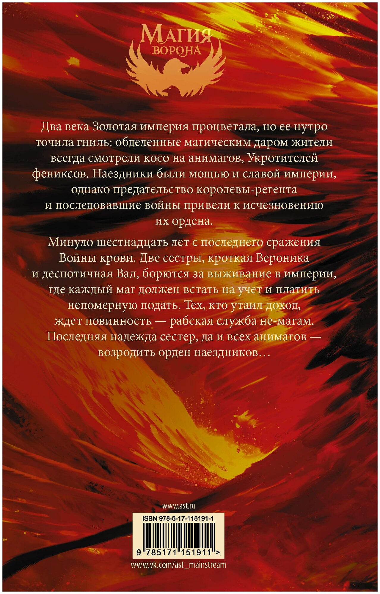 Два века Золотая империя процветала, но ее нутро точила гниль: обделенные магическим даром жители всегда смотрели косо на анимагов, Укротителей фениксов. Наездники были мощью и славой империи, однако предательство королевы-регента и последовавшие войны привели к исчезновению их ордена.