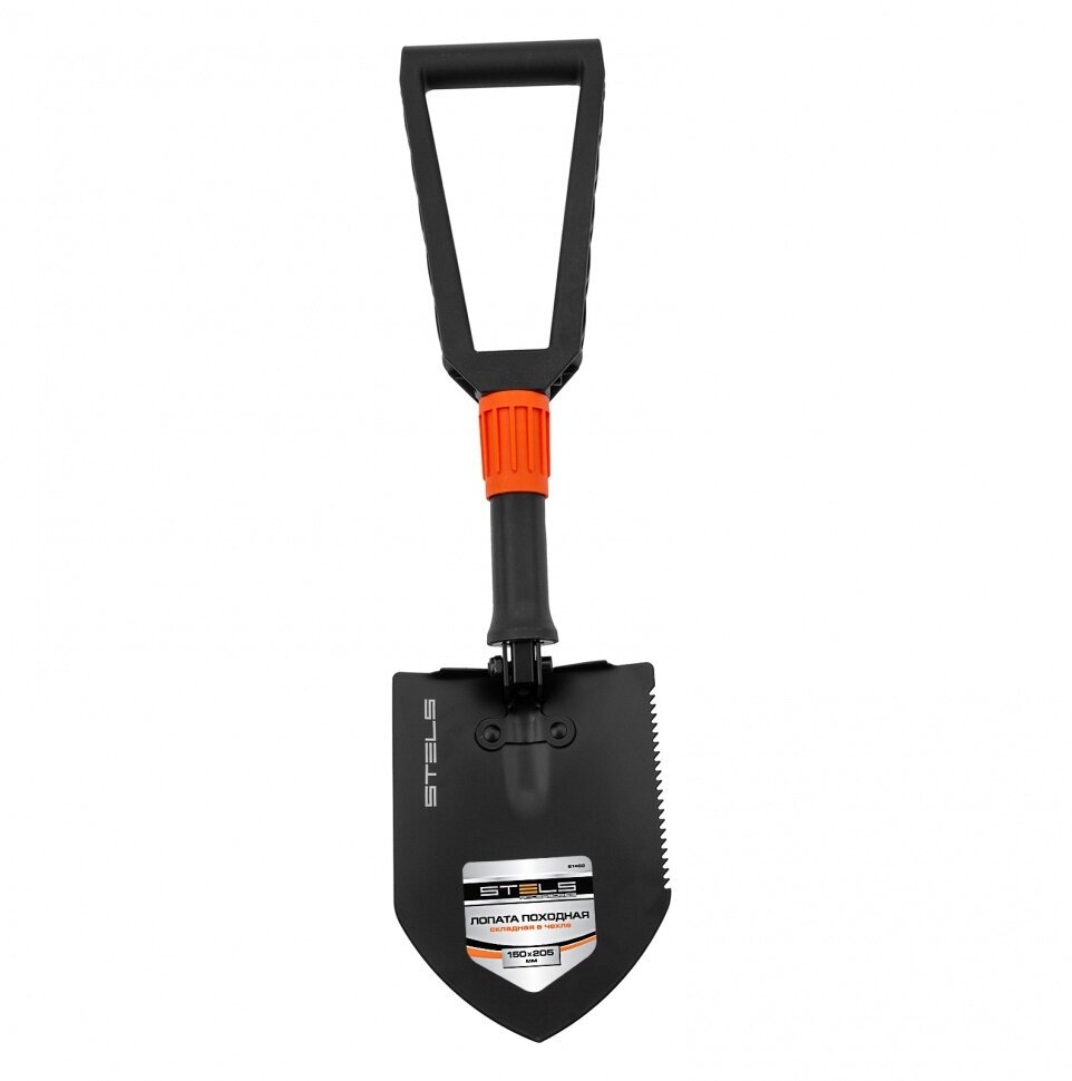 Складная походная лопата Stels размером 150 х 205 х 253-590 мм, с пластиковой рукояткой, в чехле, пригодится садоводу, автомобилисту и туристу для проведения земляных работ. Благодаря складной конструкции может выступать в качестве мотыги. Лопата легко проникает в землю за счет закругленного края верхней кромки рабочего полотна.Преимущества Прочность и долговечность — рабочее полотно выполнено из среднеуглеродистой стали и закалено до необходимой твердости. Защита от коррозии — рабочая часть имеет порошковое покрытие, предотвращающее разрушение под воздействием влаги. Продуманная конструкция — полотно клиновидной формы устойчиво к нагрузкам, а стальной цанговый механизм не позволяет лопате складываться во время работы. Надежность — широкая пластиковая рукоятка с ребрами жесткости выдерживает высокие нагрузки. Компактность — вес лопаты составляет 770 г, а длина в сложенном виде — 253 мм, поэтому она помещается как в багажник авто, так и в походный рюкзак. Удобная транспортировка и хранение — в комплект поставки входит непромокаемый чехол с подвесом.