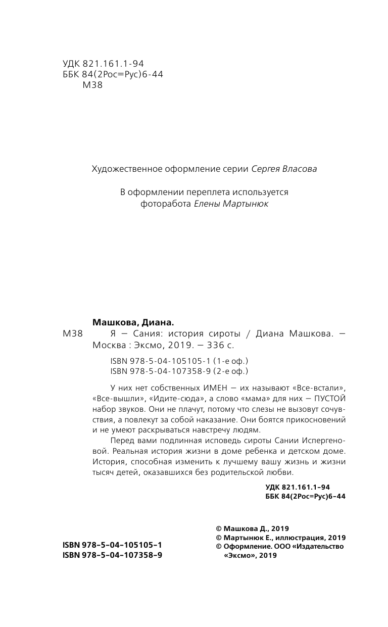 Я - Сания. История сироты (Диана Владимировна Машкова); Эксмо, 2019