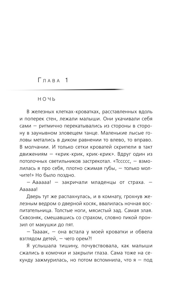 У них нет собственных ИМЕН – их называют "Все-встали", "Все-вышли", "Идите-сюда", а слова "мама" для них – ПУСТОЙ набор звуков. Они не плачут, потому что слезы не вызовут сочувствия, а повлекут за собой наказание. Они боятся прикосновений и не умеют раскрываться навстречу людям.