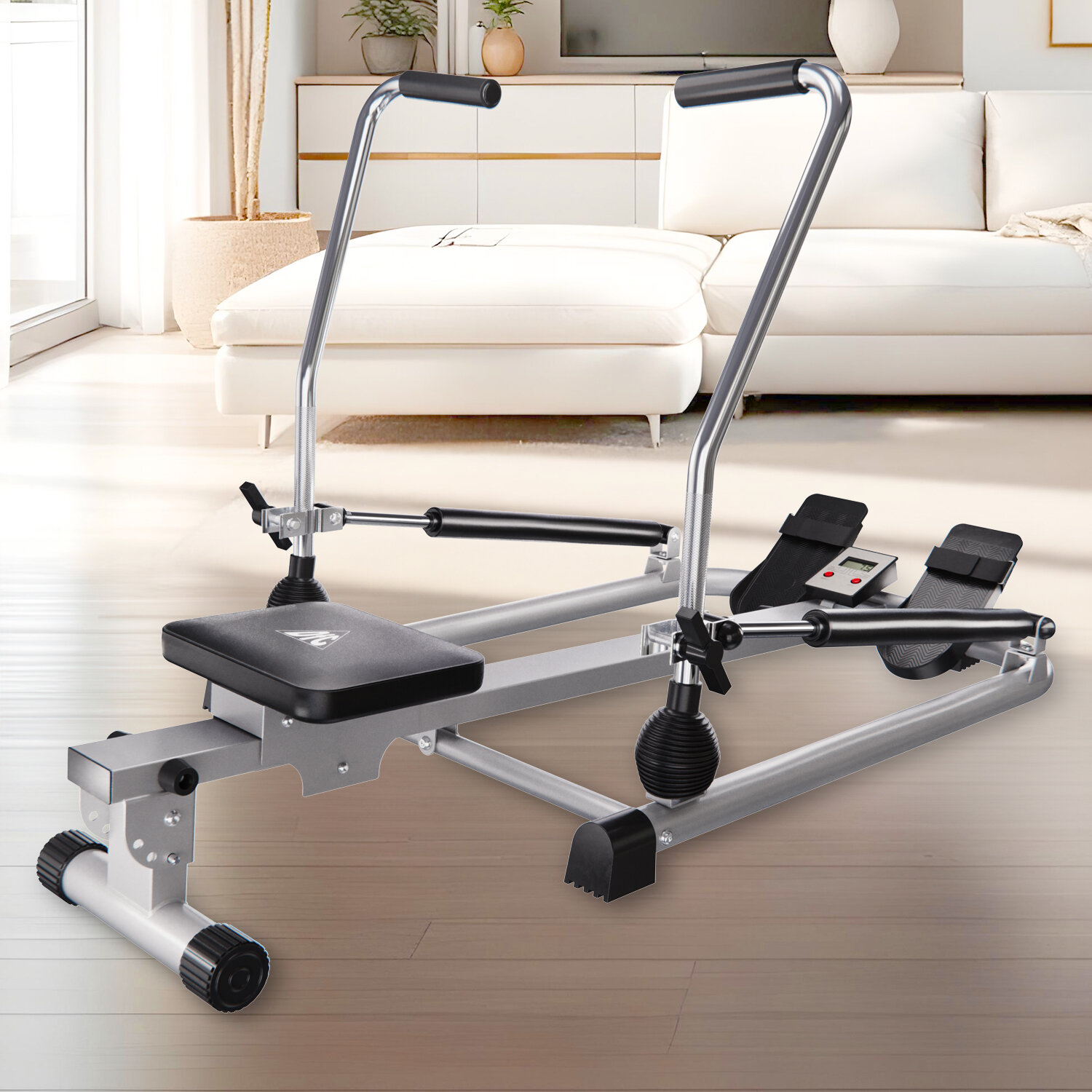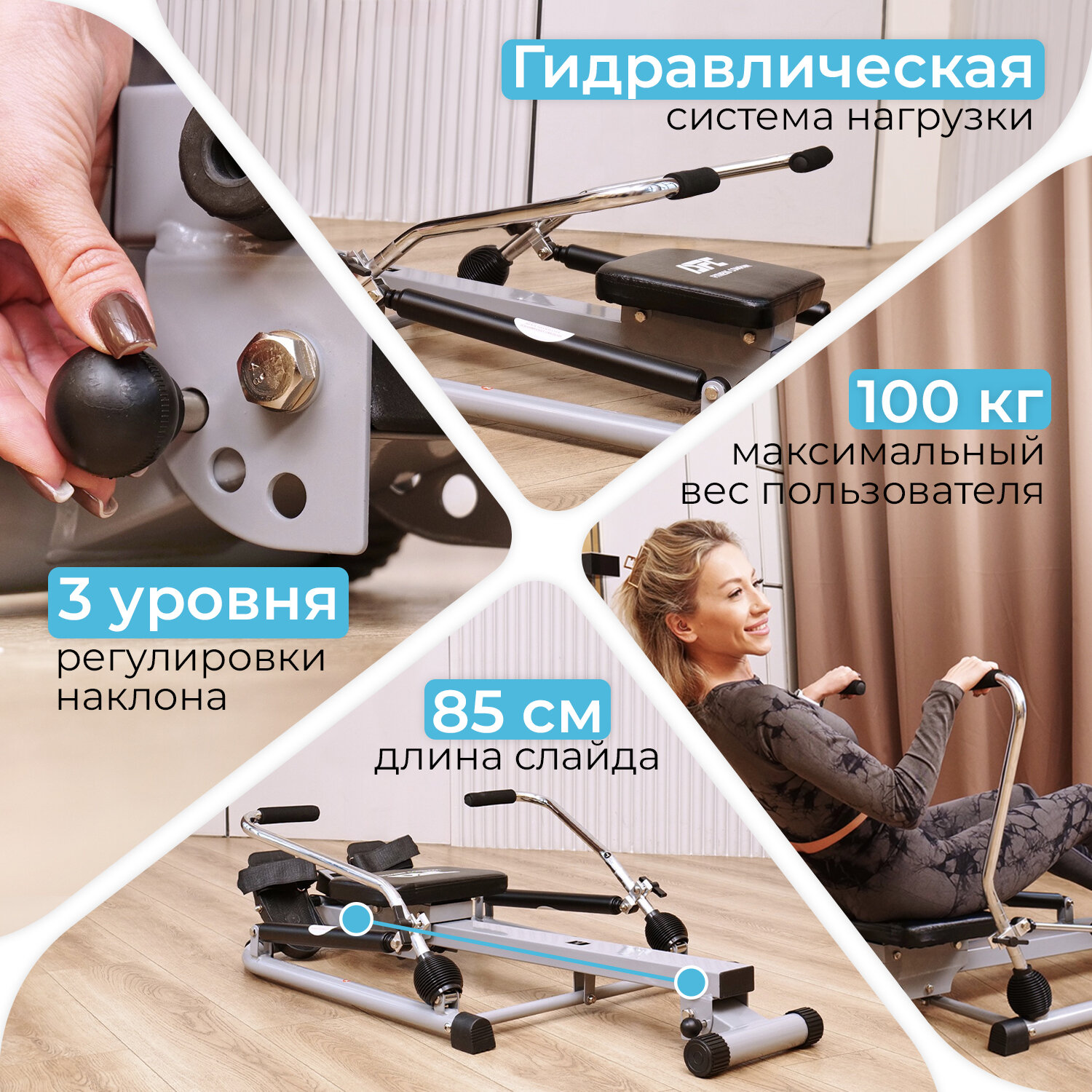 Регулировка нагрузки на тренажере осуществляется простым и удобным механизмом на рукоятках. Эта функция позволяет легко настраивать интенсивность тренировки в соответствии с вашими индивидуальными потребностями и уровнем подготовки, обеспечивая как начинающим, так и опытным гребцам оптимальную нагрузку.