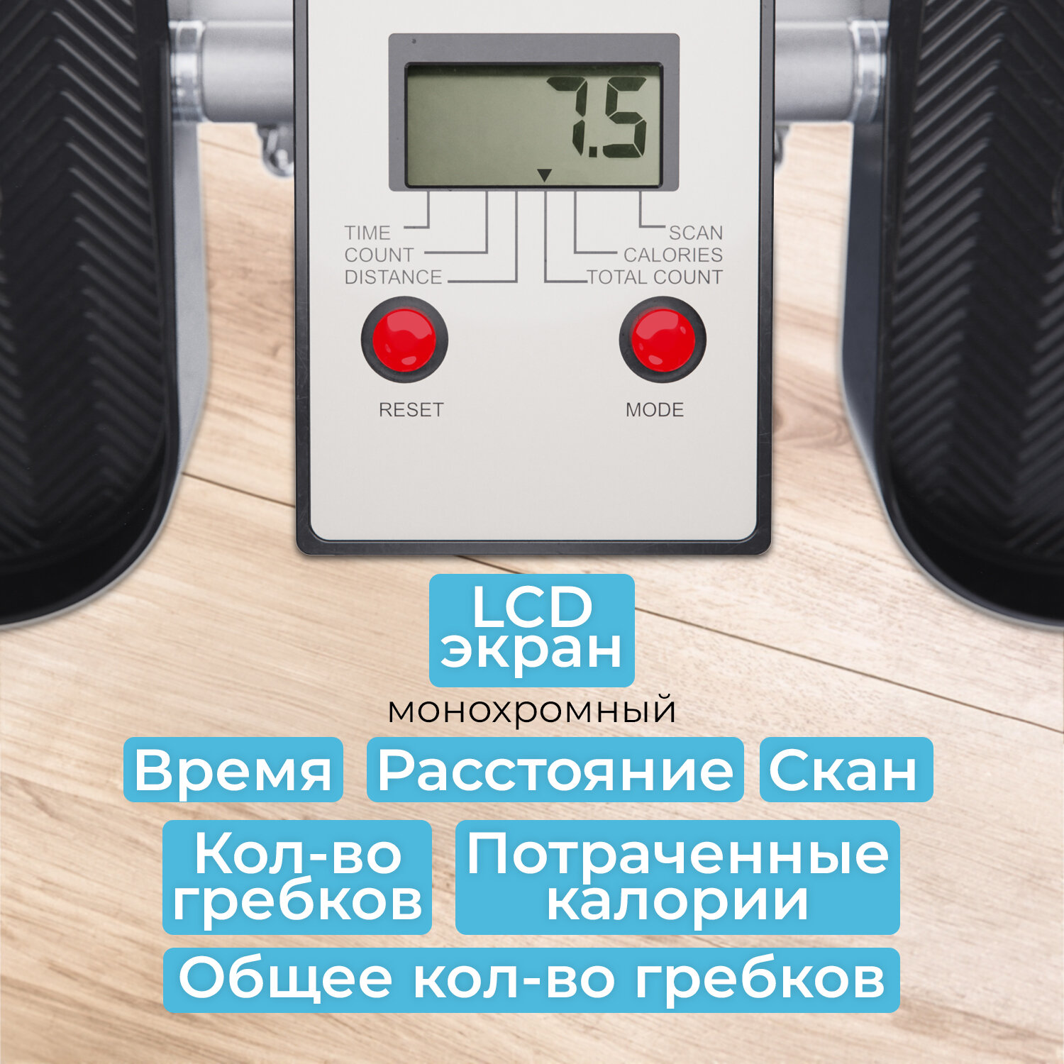 Гребной тренажер оснащен информативным ЖК-экраном, который отображает ключевые показатели тренировки, такие как время, пройденное расстояние, количество гребков, общее количество гребков и сожженные калории. Это позволяет отслеживать прогресс и оставаться мотивированным во время тренировок.