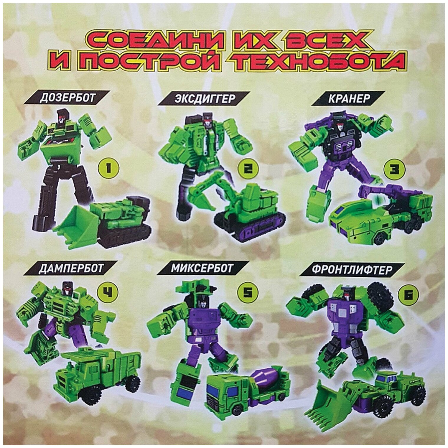 Робот-трансформер, который быстро превращается в транспортное средство и является частью туловища большого робота Мега Технобота высотой 42 см. Мега Технобот собирается из 6 роботов-трансформеров.