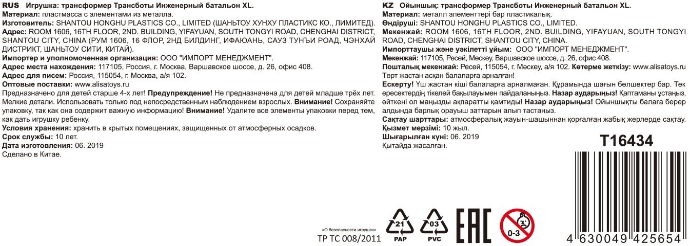 Модель: T16434 Трансботы "Инженерный батальон XL: Мега Кранер", 19 см