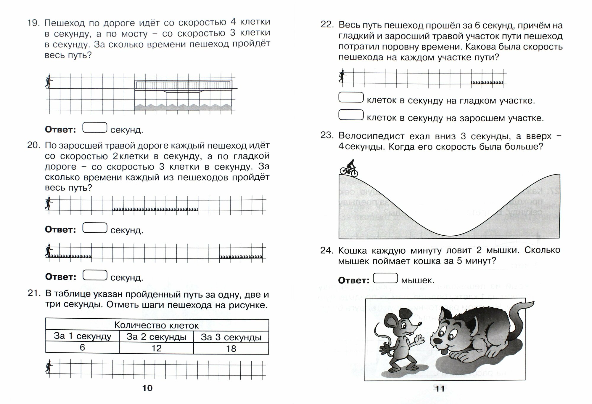 Необычность этой тетради для нас было в том, что задачи были представлены графически - человечек перемещается по клеткам, что очень наглядно демонстрирует понятие скорости (2 клетки в секунду, 3 клетки в минуту и т.д.).