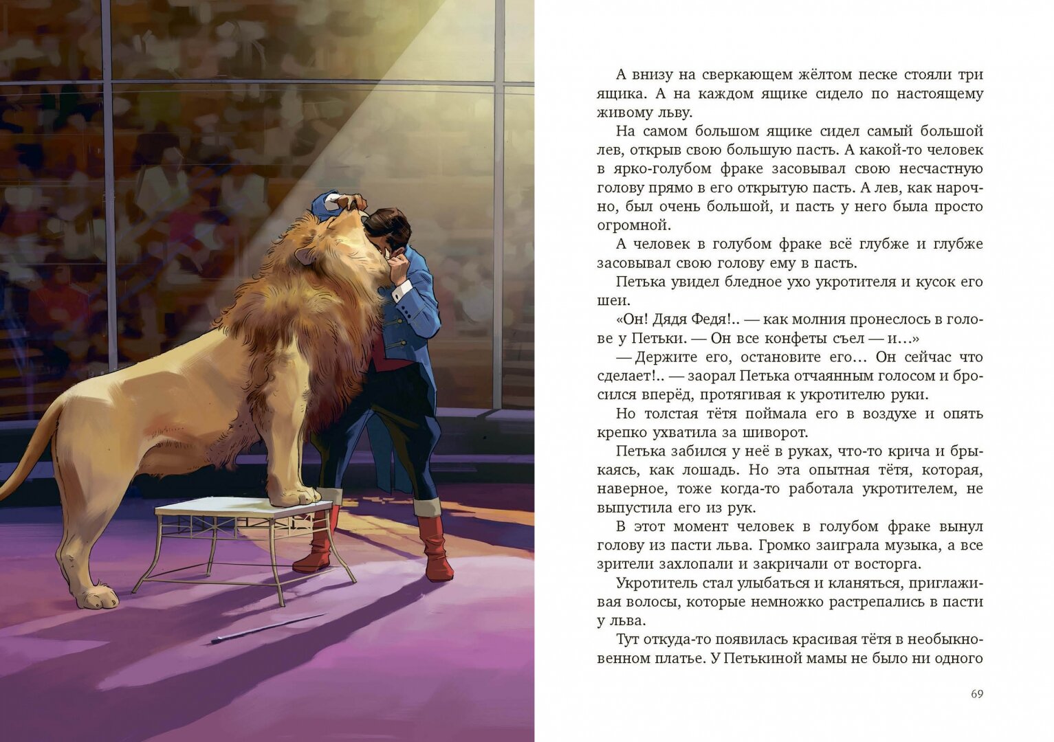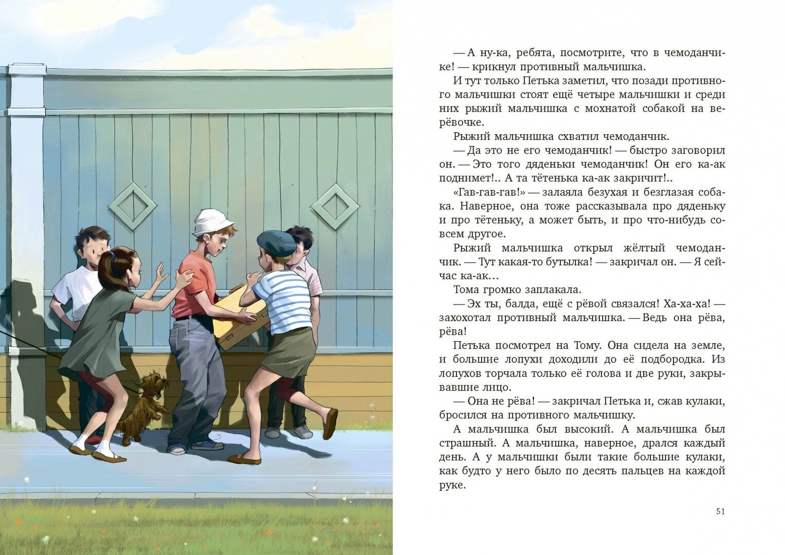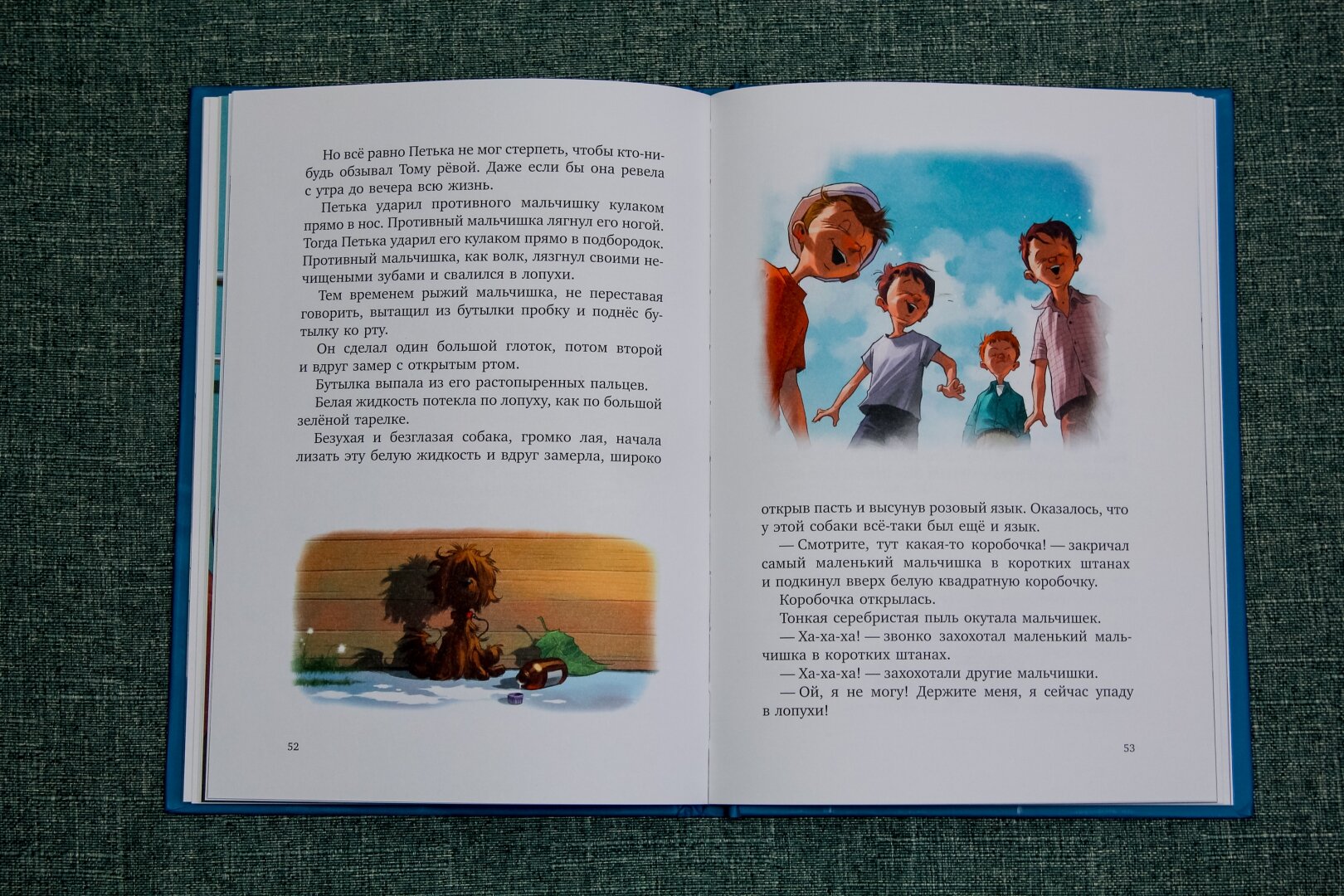 Несколько издательств выпустили данную повесть в разном оформлении. Мы купили "Эксмодетство" с иллюстрациями В. Канивца, Энас-Книга , художник В.Кривенко, Проф-Пресс , художник В. Долгов и , конечно, данное издание. Довольны всеми книгами. Очень много рисунков в "Желтом чемоданчике" Эксмодетство. В настоящем издании 10 иллюстраций на всю страницу и практически на каждой мелкие рисунки. Странички прошиты и проклеены, довольно плотный офсет. Шрифт крупный, читать легко,глаза не напрягаются. Но,главное, из-за чего и приобрели данное издание - рисунки, в которых персонажи очень похожи на героев из одноименного фильма. Такое ощущение, что поработали графическим редактором над кадрами фильма. Ностальгия взяла свое и книга заняла достойное место на полке.
