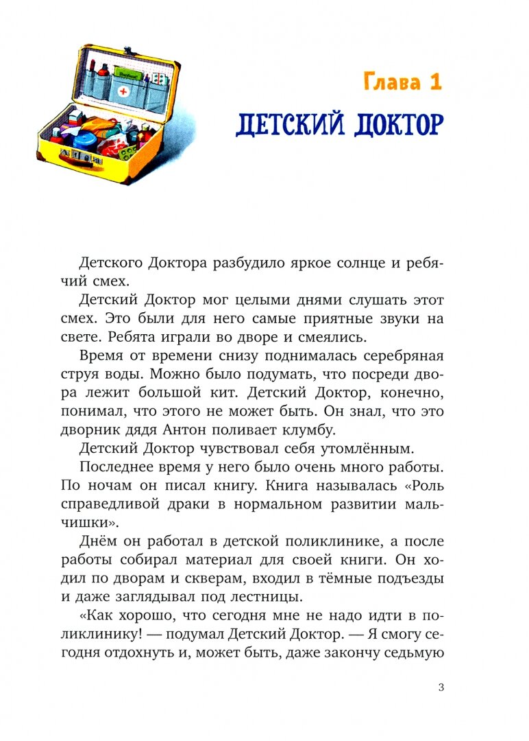 Замечательная детская повесть с красочными и современными иллюстрациями. Забавная и добрая история про то, как можно преодолеть свои слабости самостоятельно. Есть такой на свете Добрый Доктор, к которому обращаются все те, кому нужна помощь с необычными болезнями, кому-то необходимо преодолеть свой страх, кому-то научиться снова улыбаться – у Доктора в чемоданчике есть особые лекарства на все случаи жизни. Но все выходит из-под контроля, когда это чемоданчик теряется, и пока все его ищут, по городу начинают происходить настоящие чудеса, а пути детей-пациентов Доктора пересекаются. Для каждого из них в процессе находится такое испытание, в котором он должен самостоятельно победить свой недостаток, и поэтому следить за очень живыми и обаятельными героями Софьи Прокофьевой интересно, и немного волнительно) Книга детская, но посыл в ней универсален для всех, поэтому я бы рекомендовала ее для чтения лет с 6 и старше.