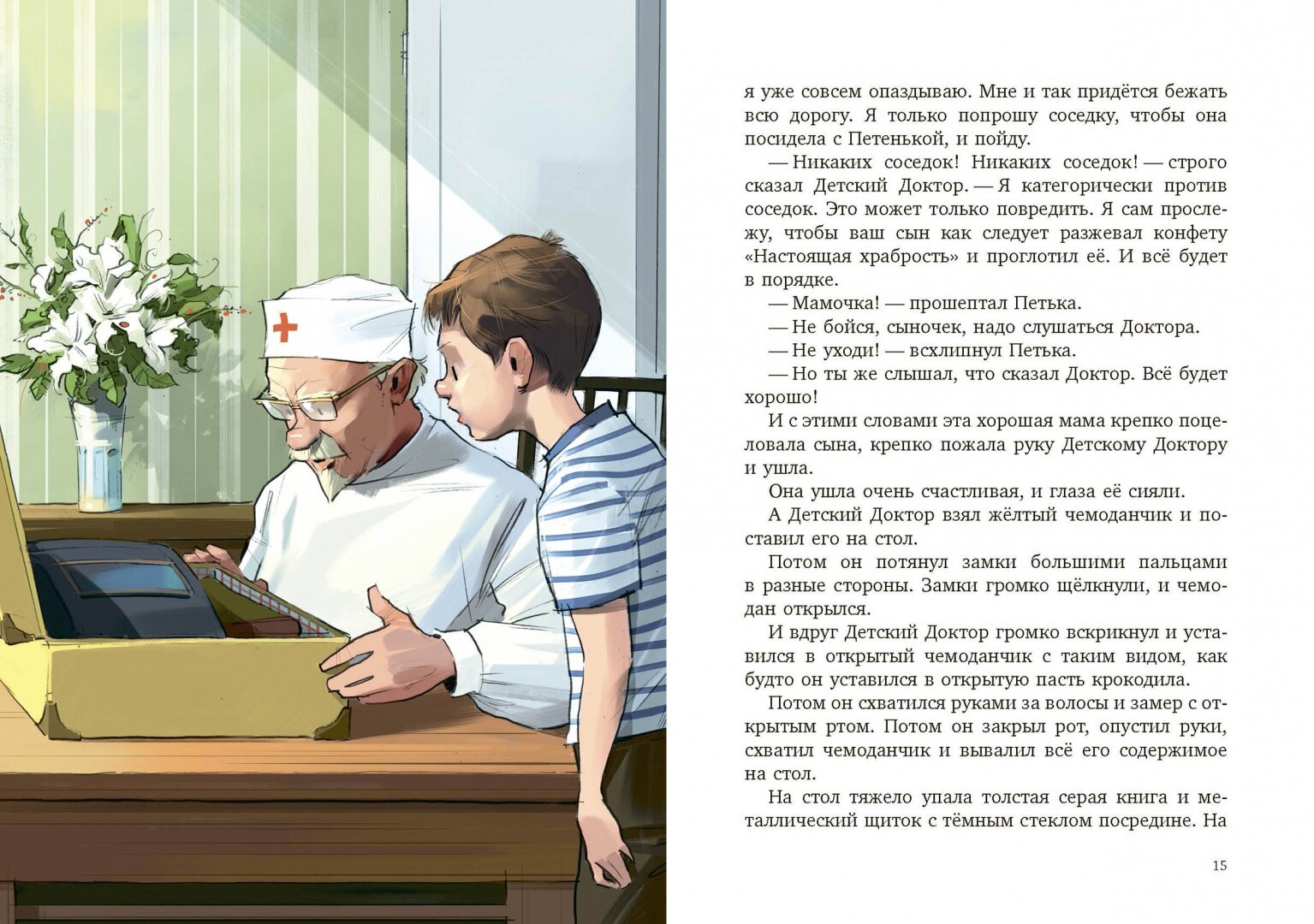 Чего только нет в жёлтом чемоданчике Детского Доктора. Но случилась беда - чемоданчик пропал! А все эти лекарства, попав не в те руки, могут натворить немало неприятностей. Значит, нужно как можно скорее их найти! Вот только мальчик Петька - единственный, кто знает, где искать пропажу, - так и не успел съесть ни одной конфеты "Настоящая храбрость". Сможет ли он справиться со своими страхами и помочь Доктору?