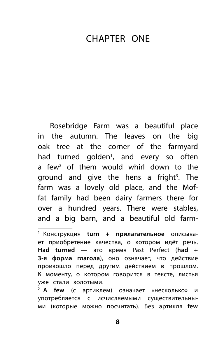 В этой книге-билингве русский перевод расположен напротив английского текста, так что следить за сюжетом будет легко. Интересные обороты и сложные грамматические конструкции поясняются в постраничных сносках-комментариях. С любимыми историями английский изучать легко и интересно!