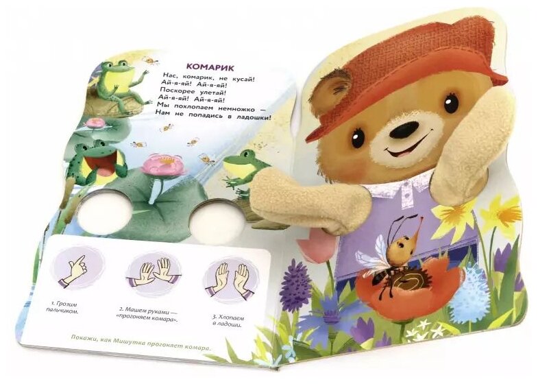 Главная изюминка книжки, которая ни одного малыша не оставит равнодушным – пальчиковая кукла в виде медвежонка.
