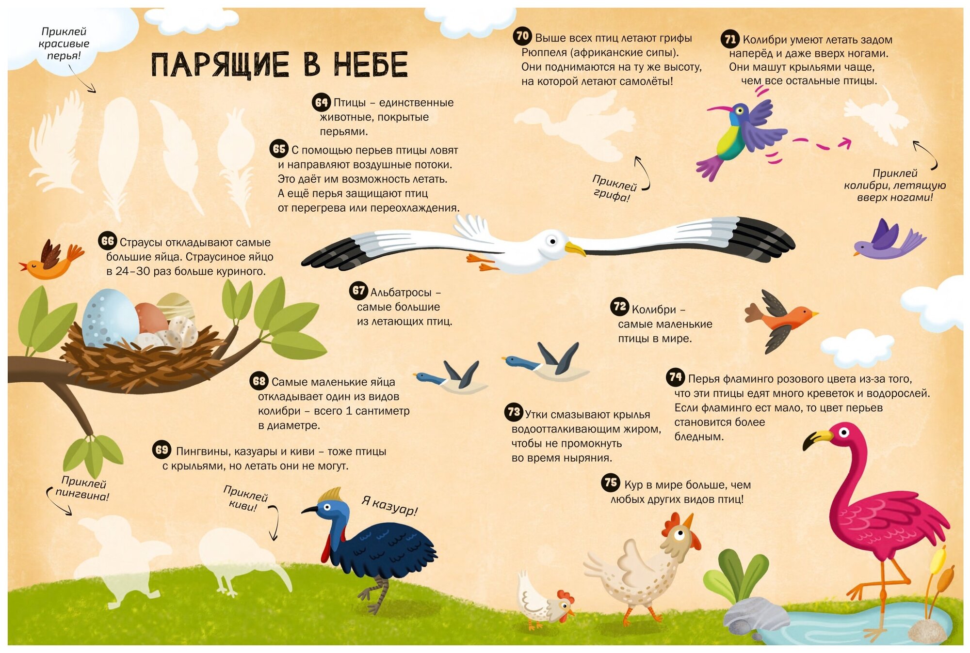 Знаешь ли ты, какое животное самое быстрое на планете? Сколько сердец у осьминога? Почему слоны не могут прыгать? Открой для себя много удивительных фактов о животных в этой книге с наклейками. Найди наклейки к этим интересным сведениям и отправляйся в удивительное путешествие по страницам книги. Пособие способствует развитию: - мелкой моторики; - речи; - логического мышления; - абстрактного мышления. Содержание: 100 захватывающих фактов о животных; Вокруг света; Дикие звери; Такие похожие; Дикие и удивительные; Веселая морская жизнь; Зимние друзья; Водный мир; Парящие в небе; Крошечные существа; Под землей; Прекрасные птицы; Проверь себя! Что особенного в этой книге: - более 150 красочных наклеек; - яркие фоны для создания с помощью наклеек собственных сюжетов; - информация в доступной форме для ребенка. - стильные и яркие картинки развивают вкус и эстетическое восприятие. Что важно знать родителям? Книга предназначена для детей от 3 лет.