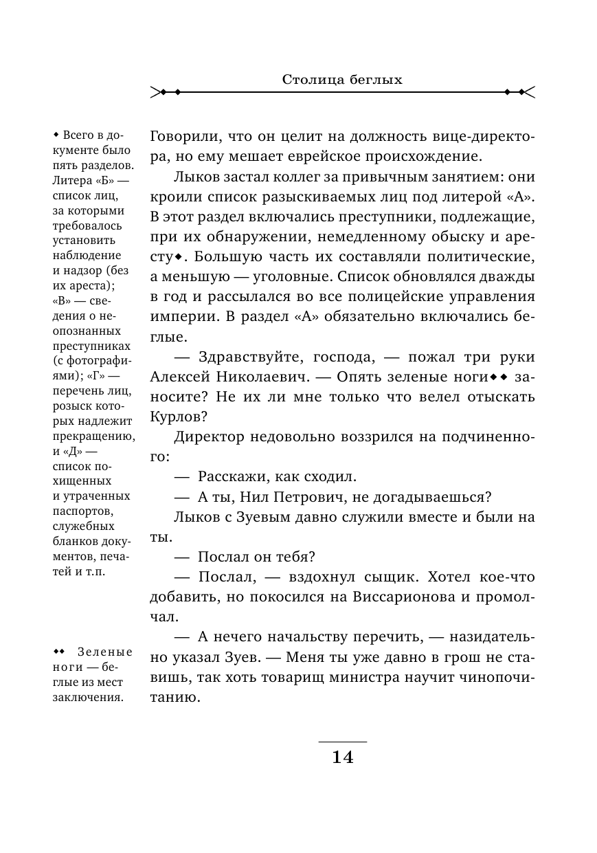 Коллежский советник Лыков провинился перед начальством. Бандиты убили в Одессе родителей его помощника Сергея Азвестопуло. А он привлек к поискам убийц самого Сергея, а не отослал в Петербург, как велели. В наказание Лыкова послали в Туруханский край. Оттуда участились побеги ссыльных; надо выяснить, как они ухитряются исчезать бежать из такого гиблого места. Прибыв к Полярному кругу, сыщик узнает, что побеги поставлены на поток. И где-то в окрестностях Иркутска спрятаны "номера для беглых". В них элита преступного мира отсиживается, меняет внешность, получает новые документы. А когда полиция прекращает их поиски, бандиты возвращаются в большие города. Не зря Иркутск называют столицей беглых. Лыков принимает решение ехать туда, чтобы найти и уничтожить притон.