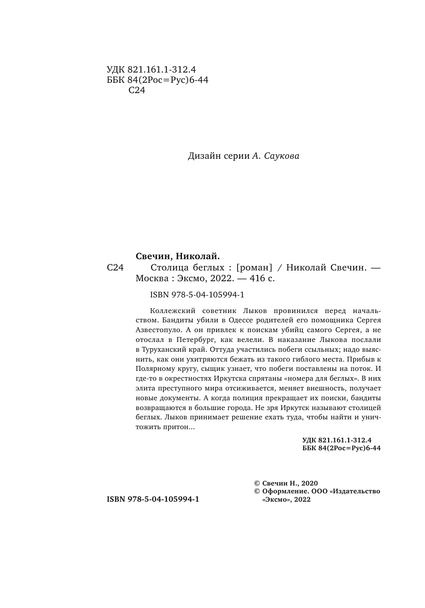 Книга: Столица беглых (Свечин Николай); ООО "Издательство "Эксмо", 2019