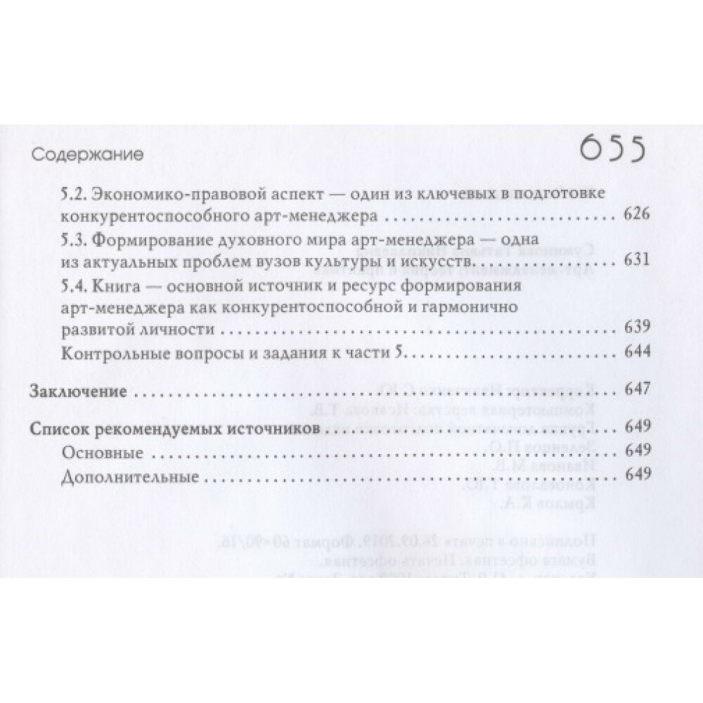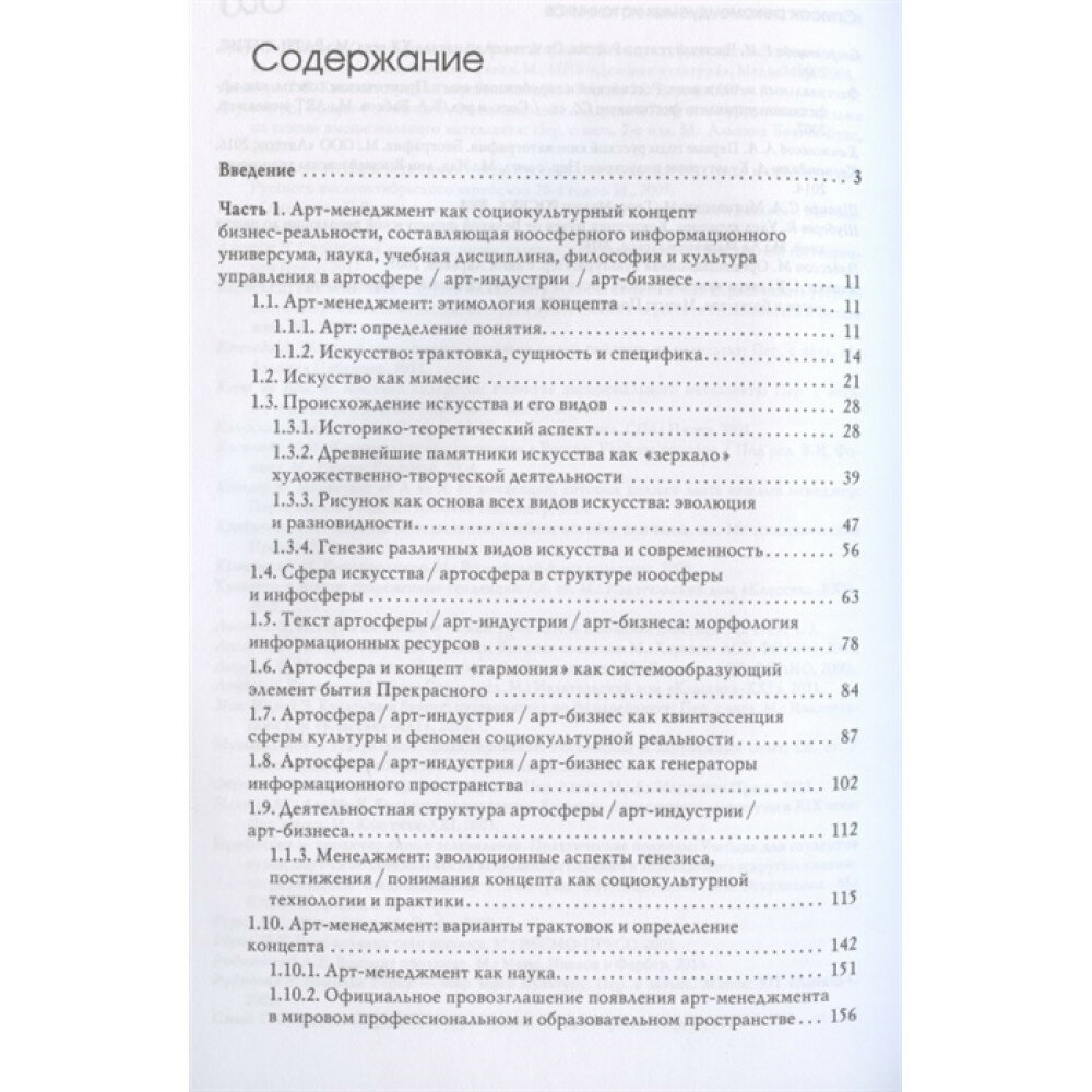 Здесь раскрыты теоретико-методологические и технологические/практические аспекты арт-менеджмента как философии и культуры управления в сфере искусства (артосфере)/арт-индустрии/арт-бизнесе, отраслевого менеджмента, науки, прикладной учебной дисциплины, пространства субкультуры, инструмента/механизма творческих/креативных индустрий, российской и международной экономики и политики в сфере культуры и искусства по удовлетворению потребностей реципиентов в поиске новых смыслов бытия, культурных ценностях и зрелищах (выставки, спектакли, кинофильмы и т. д.). При этом выявлена специфика конкурентоспособной деятельности арт-менеджера как продюсера, эффективной личности и эмоционального лидера, стратегического интеллектуального ресурса/актива креативной экономики и реализации государственной политики в сфере культуры и искусства.