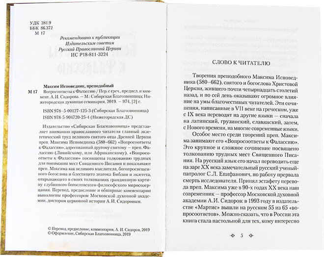 Книга: Вопросоответы к Фалассию (Максим Исповедник, преподобный); Сибирская Благозвонница, Сибирская Благозвонница, 2022