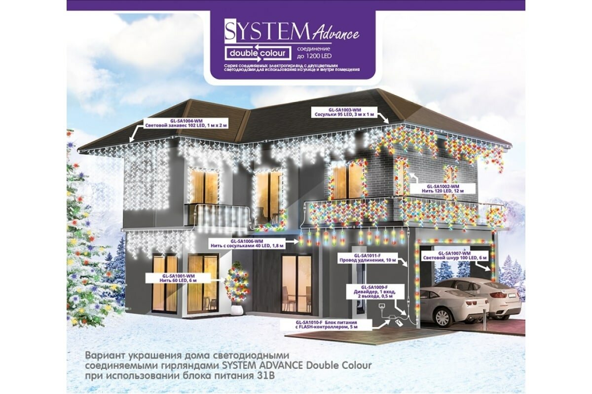 Гирлянда уличная Сосульки 95хLED холодный белый и цветной 3х1 м GLOS
