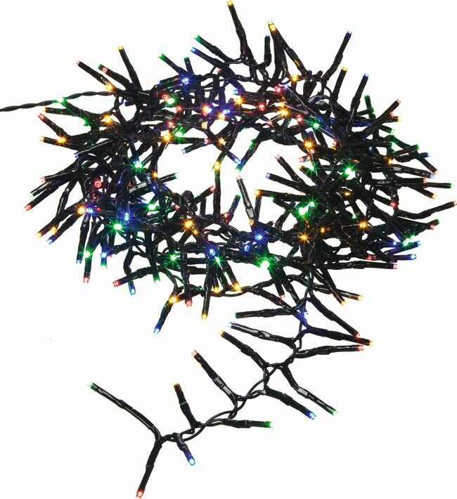 Декоративная электрическая гирлянда со светодиодными источниками света разного цвета для украшения новогодней елки или интерьера. Питание 31 В постоянного тока, оснащен преобразователем напряжения (трансформатором) для поключения к сети переменного тока 220 В. Номинальная мощность изделия: 8,2 Вт. Предназначена для внутреннего и наружнего использования.