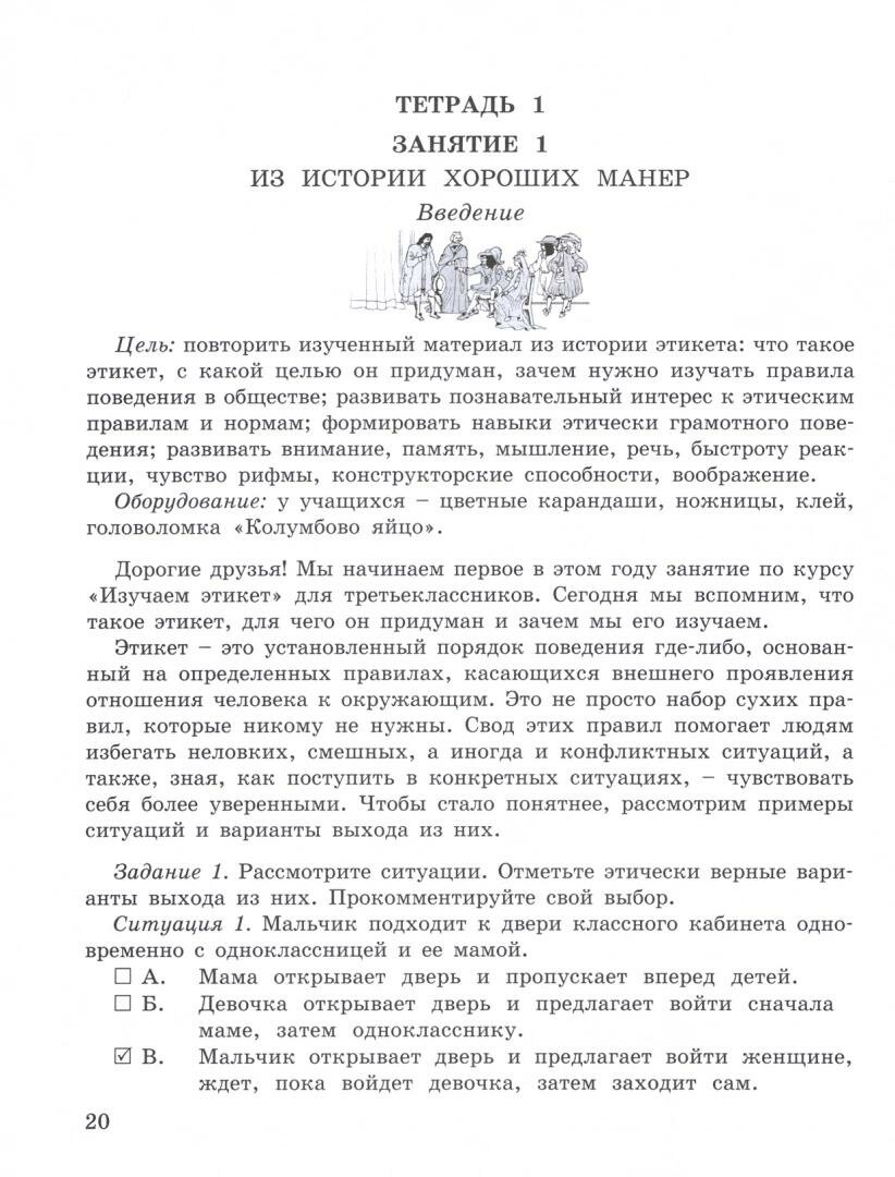 В данном пособии представлены материалы к занятиям с третьеклассниками по курсу "Изучаем этикет, или Обучаемся хорошим манерам", который направлен на выполнение одновременно двух задач: ознакомление детей с основами этикета и на развитие основных психических функций учащихся, таких как память, внимание, воображение, речь, коммуникативные способности, различные стороны логического мышления.