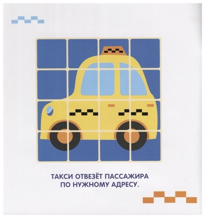 Книга с заданиями-выложить картинку по образцу понравилась внуку(ему 3 года).Он с большим удовольствием выполнял работу вместе с родителями.Одновременно запоминал название машин и из чего состоят машины (кабина,колеса.кузов и т.д.),а также закреплял цвета и для чего они предназначены.Хорошее обучающее пособие для детей.Хочется также учесть качество бумаги книги-мелованная.