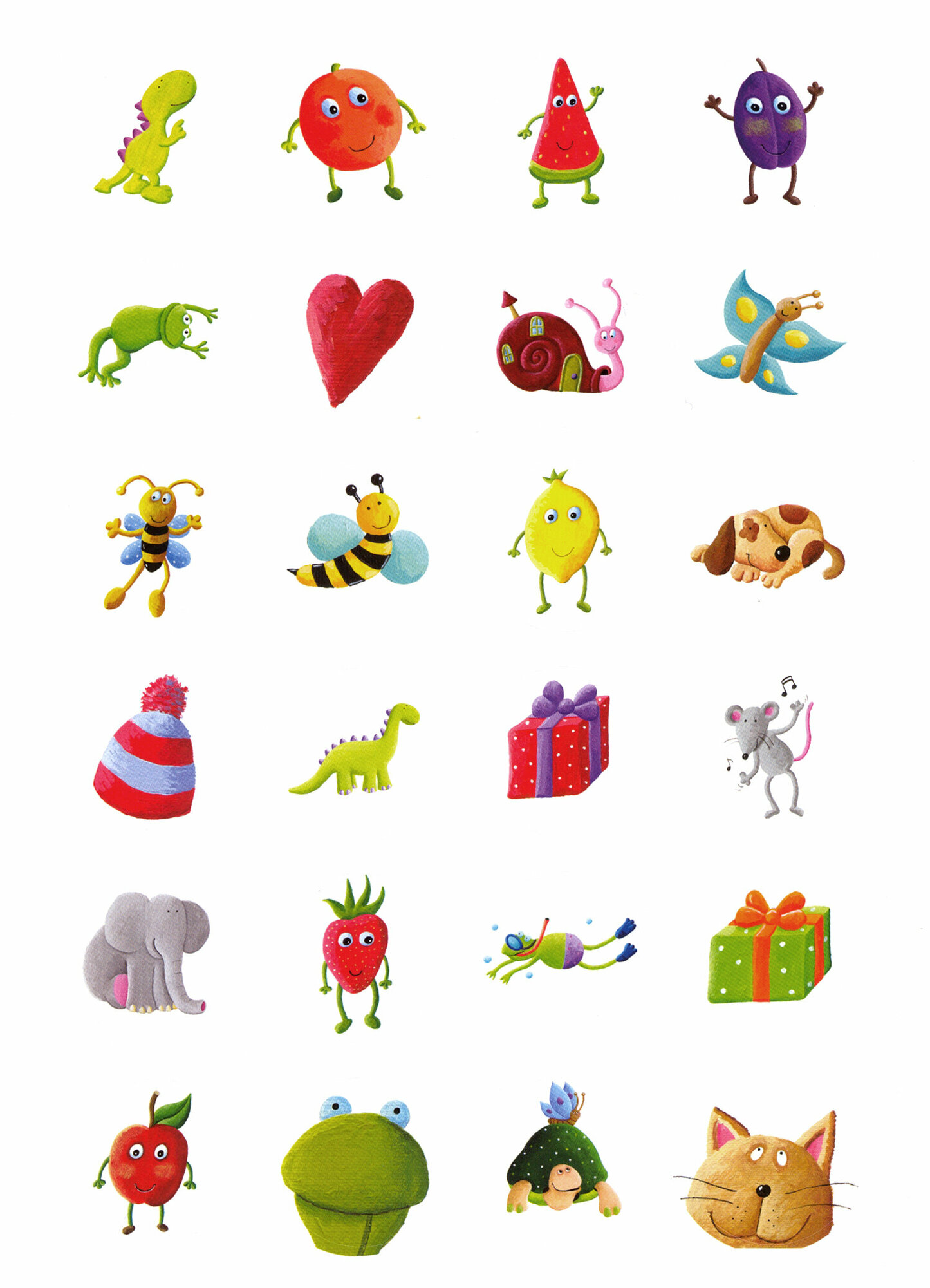 Картинки по типу открыточных, в стиле пластилиновых мультфильмов. Герои симпатичные и очень забавные.