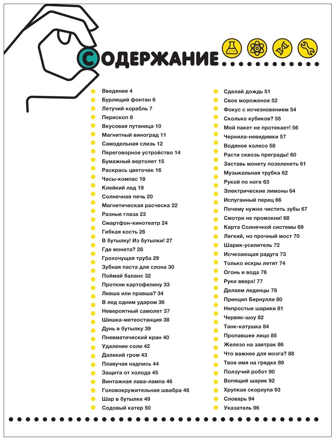Оригинально оформленный сборник простых экспериментов, которые безопасно можно проводить в домашних условиях. С помощью этой книги родители и дети смогут наблюдать простейшие физические явления и химические реакции. Бурлящие фонтаны, снопы искр, солнечная микроволновка, электрический лимон, невидимые чернила, оптические иллюзии вот лишь некоторые из экспериментов, собранных в этой книге.
