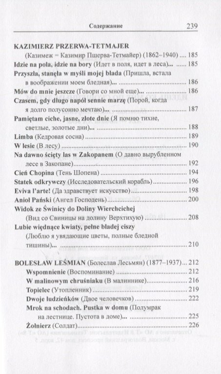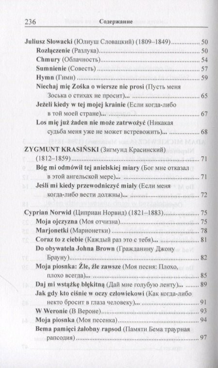 Мягкая обложка, белоснежная бумага, листы только проклеены (не прошиты). Данная книга без вступительной статьи о том как читать эту книгу и об особенностях метода. В сборник вошли стихотворения десяти польских поэтов. Кроме стандартного (для этого метода) дословного перевода и лексико-грамматического комментария в данной книге есть примечания как самого автора (Адам Мицкевич к своим стихотворениям) так и переводчика.