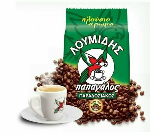 В Греции есть своя особая марка напитка – национальная гордость. Это «Лумидис Папагалос» (Loumidis Papagalos), который иначе называется греческое кофе с попугаем. На упаковке нарисован зелёный попугай, являющийся эмблемой бренда, слово «Лумидис» в названии – это фамилия основателя марки. Со смесью аутентичных, богатых и восхитительных ароматов, и известным с 1919 года именем. Настоящая преемственность между прошлым и настоящим. Семейная компания LOUMIDIS – гарант высокого качества! 90% населения Греции пьют именно кофе “LOUMIDIS PAPAGALOS”. Гармонично подобранная смесь сортов арабики и робусты обладает насыщенным глубоким вкусом с минимумом кислинки и божественным ароматом! Долгое послевкусие будет радовать и душевно согревать Вас!Кофе молотый LOUMIDIS PAPAGALOS при заваривании образует красивую светло-коричневую пенку.Приготавливается традиционным способом в турке.Инструкция для приготовления одной порции готового напитка:1. Налейте одну кофейную чашечку холодной воды в турку (кофеварку) или другую кофеварку с узким горлышком.2. Добавьте одну чайную ложку Греческого кофе и сахар по вкусу. Хорошо перемешайте.3. Доведите до кипения на среднем огне.4. Снимите с огня, как только кофе начнёт "убегать" и разлейте по кофейным кашечкам, разделяя пену поровну между ними. Кофе нельзя мешать после того, как он был разлит! Ваш кофе по-гречески готов!Также рекомендуем вам добавить к напитку лёд и получить совсем другой напиток – фраппе. Слово «frappe» имеет французские корни и переводится по одной из версий как «перемешанный, взбитый», по другой – «охлаждённый льдом». Сам напиток появился именно в Греции, а красивое имя на французский лад придумали сами греки для благозвучности. Название говорит само за себя – рецепт греческого кофе, кроме холодной воды, включает лёд. Кофе фраппе представляет собой холодный напиток, характеризующийся интересным, неординарным вкусом. Классический рецепт основан на растворимом кофе. Вариант приготовления фраппе с молотым кофе больше всего используется в Италии, где к растворимому кофе плохо относятся. Но такой кофе не дает нужную пышную пену при смешивании со льдом.Ингредиенты:Молотый кофе 2 ч. л. на 100 мл воды;Сахар по вкусу;Пару кубиков пищевого льда или холодной воды.Сварите крепкий кофе и дайте ему постоять пару минут. Напиток нужно отфильтровать от гущи, частичек молотого кофе в чашке быть не должно. Сахар следует добавить, пока кофе не остыл, иначе он не растворится. Теперь напиток нужно охладить, желательно в холодильнике или морозилке. Возьмите шейкер или любую другую ёмкость с плотно закрывающейся крышкой. Налейте туда кофе, и холодную воду или лёд. Соотношение кофе и воды должно быть 1:1. Тщательно потрясите ёмкость до появления пенки, можно использовать блендер или миксер. Аккуратно разлейте напиток в открытые коктейльные бокалы. Ваш фраппе готов!