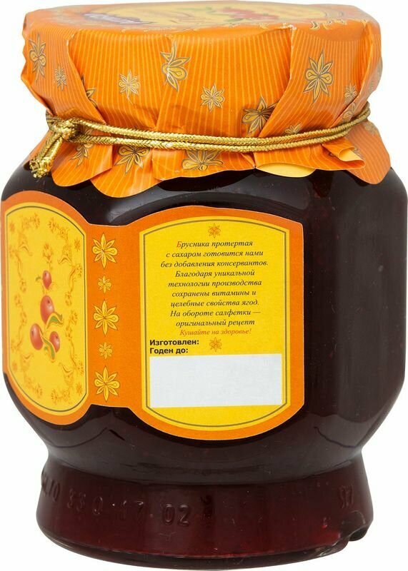 Мы заботимся не только о качестве, но и о пользе нашей продукции. Благодаря уникальной технологии производства этого продукта, нам удается сохранять максимум полезных свойств ягод брусники. Протертые ягоды брусники – это мощный витаминный заряд и хорошее настроение в каждой банке.
