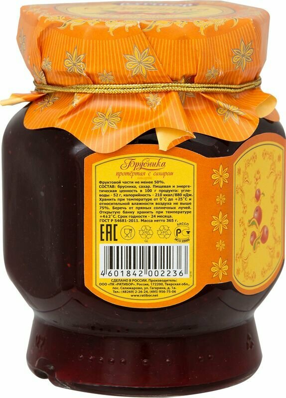 Сервис сравнения цен СкидкаГИД предлагает сравнить цены на товар «Брусника протертая с сахаром Ратибор ст 365 г.»