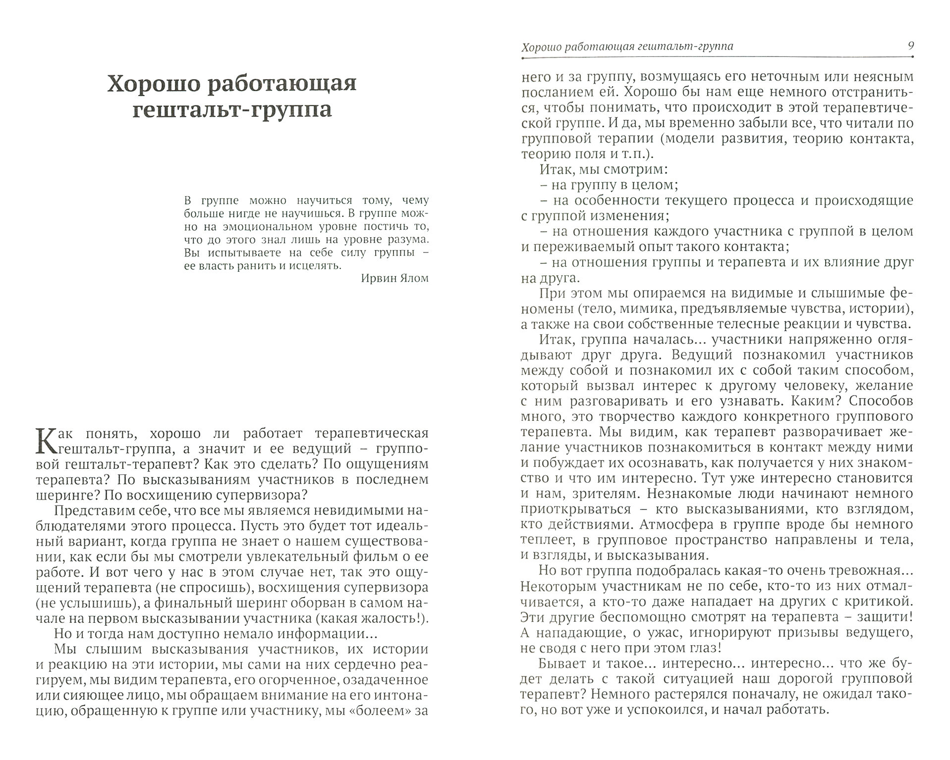 Книга предназначена для широкого круга специалистов -групповых терапевтов разных направлений, гештальт-терапевтов, тренеров, студентов психологических факультетов, интересующихся данной темой.