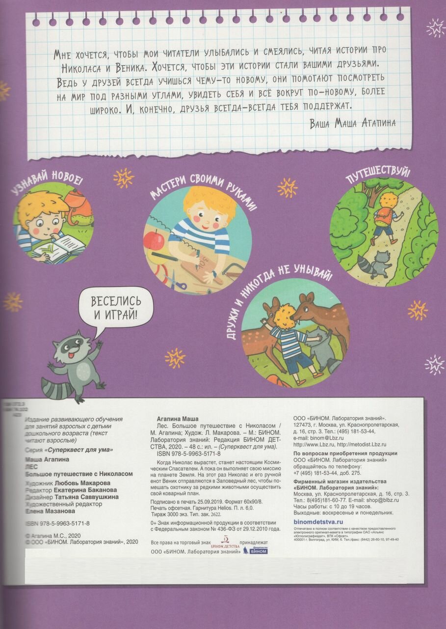 Лес. Большое путешествие с Николасом (Мария С. Агапина); БИНОМ ДЕТСТВА, 2023
